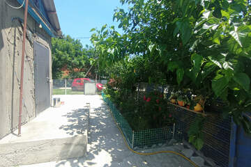 . Огород: плодоносящие деревья и кустарники, есть место под грядки, цветник перед входом в дом.