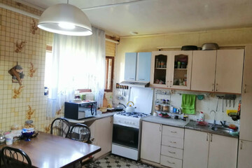 дом 110 кв.м.: кухня 14,3кв.м., зал 21 кв.м., 3 спальни, котельная, ванная комната, прихожая. Материал постройки: ½ часть дома бетонные блоки, ½ часть дома дерево, всё объединено общим фасадным решением (разница материалов не определима), произведено утепление (коммунальные расходы минимальные), крыша металлическая новая, дом подключен к газу, электроэнергии, водоснабжению (скважина), водоотведению (септик). Двор забетонирован, имеются 2 навеса, мангал, в огороде плодовые деревья. Делали для себя, на совесть, качество можете сравнить, посмотрев наш дом и новые дома, строящиеся исключительно для продажи. Документы все в порядке, ограничений и обременений нет. Причина продажи переезд в другой город.