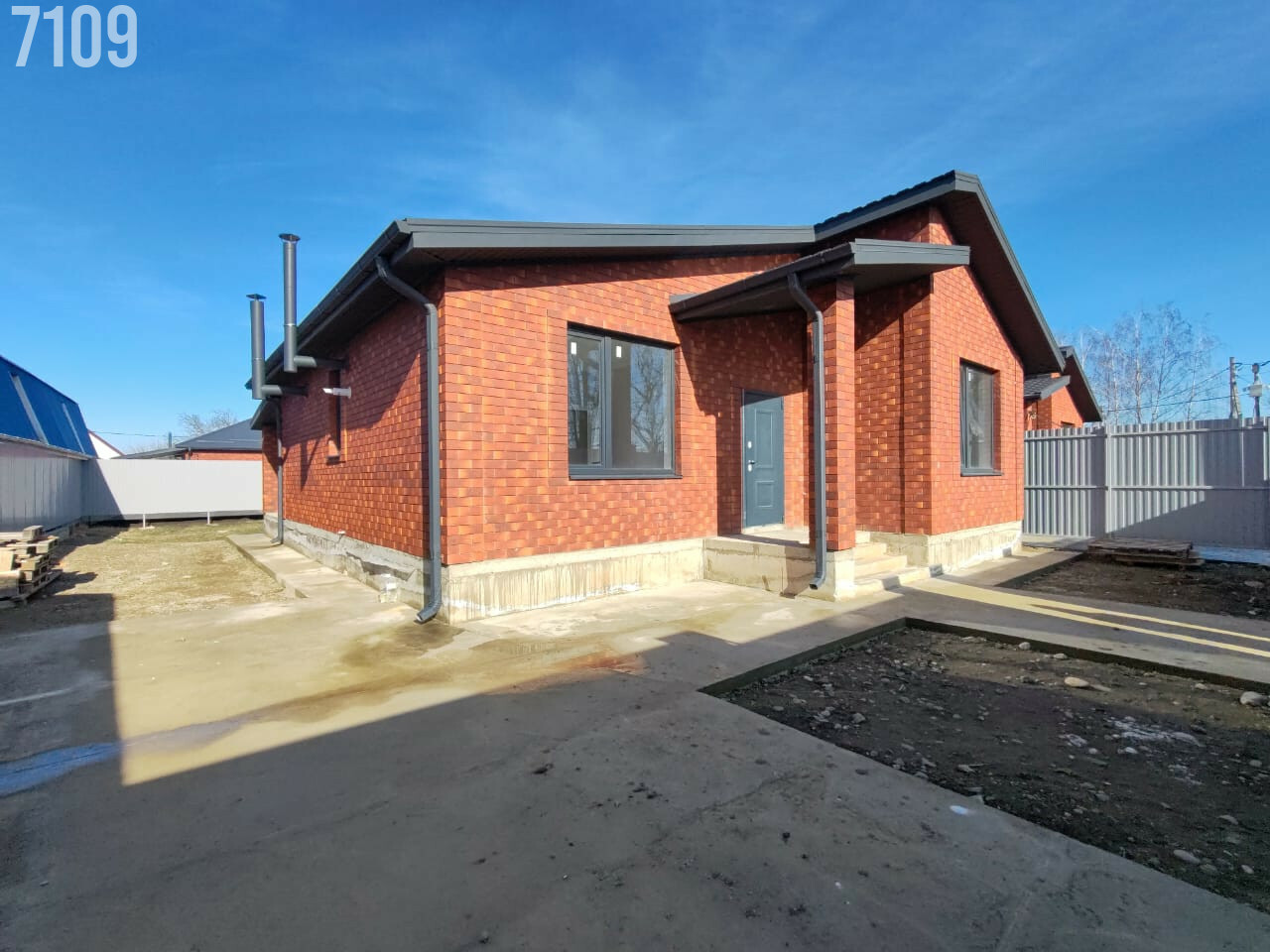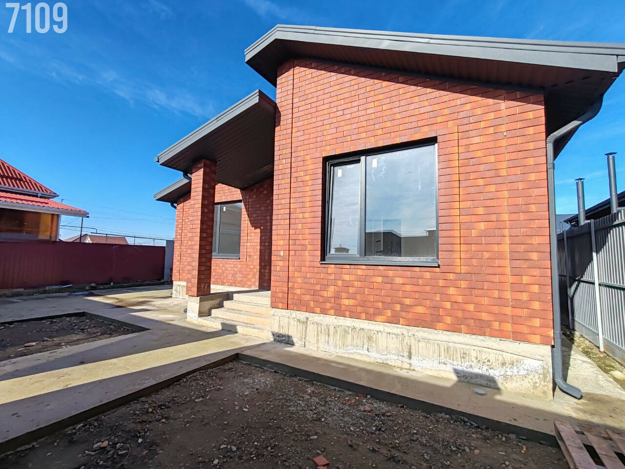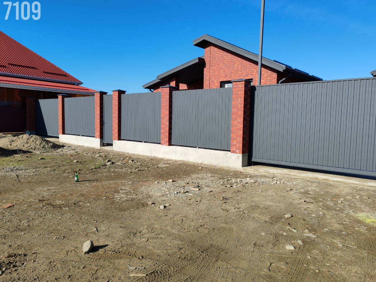 - Участок данного дома огорожен по периметру, двор забетонирован, откатные ворота на консольной балке, разбиты клумбы, завезена плодородная земля.