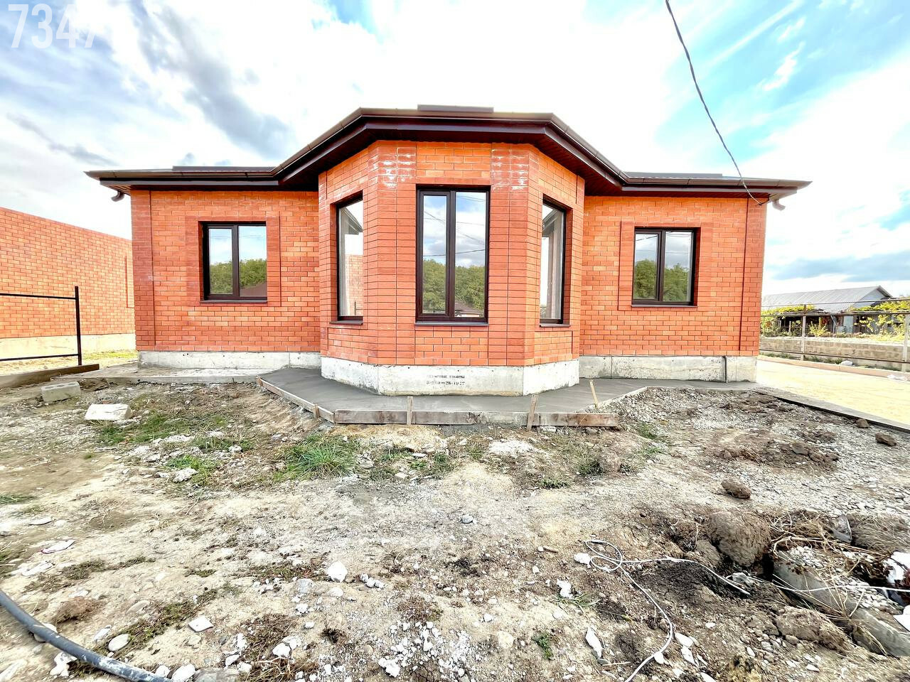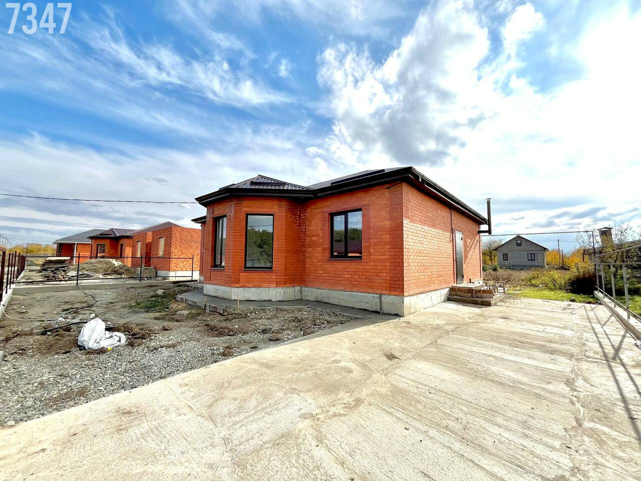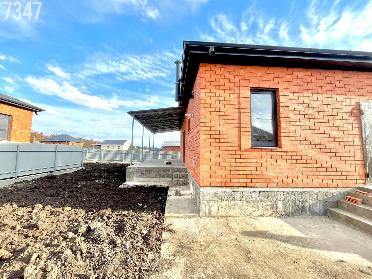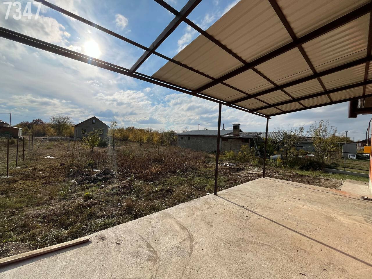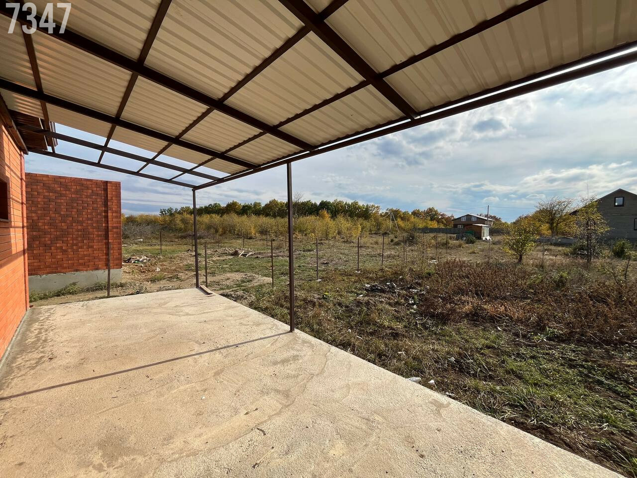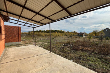 - В подарок покупателю облагорожен и обустроен двор: залита отмостка, забетонирован двор, сделана терраса, над которой уже установлен навес. Это существенно экономит деньги из бюджета.