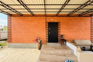 Блочный, обложен кирпичом — отличная теплоизоляция и долговечность. Общая площадь — 100 м², участок — 5 соток.
