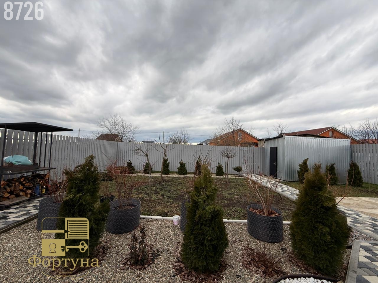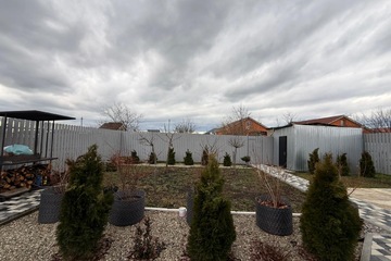 На участке прекрасный молодой сад - 2 персика, 2 черешни, 1 груша, голубика, малина, ежевика, высажено 29 туй, голубая ель, лавровишня, хакура нишики (розовая ива).