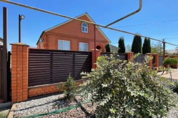 - Фасадный забор из евроштакетника, ворота - автоматика.