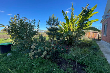 - На участке много декоративных растений: туи, можжевельники, сосны, пихты, красный дуб, сумах, банановое дерево!!!