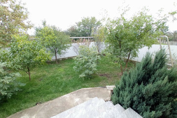 Участок полностью огорожен по периметру капитальным забором, забетонированный двор, большой навес, автоматические ворота.