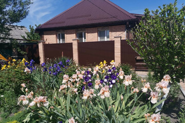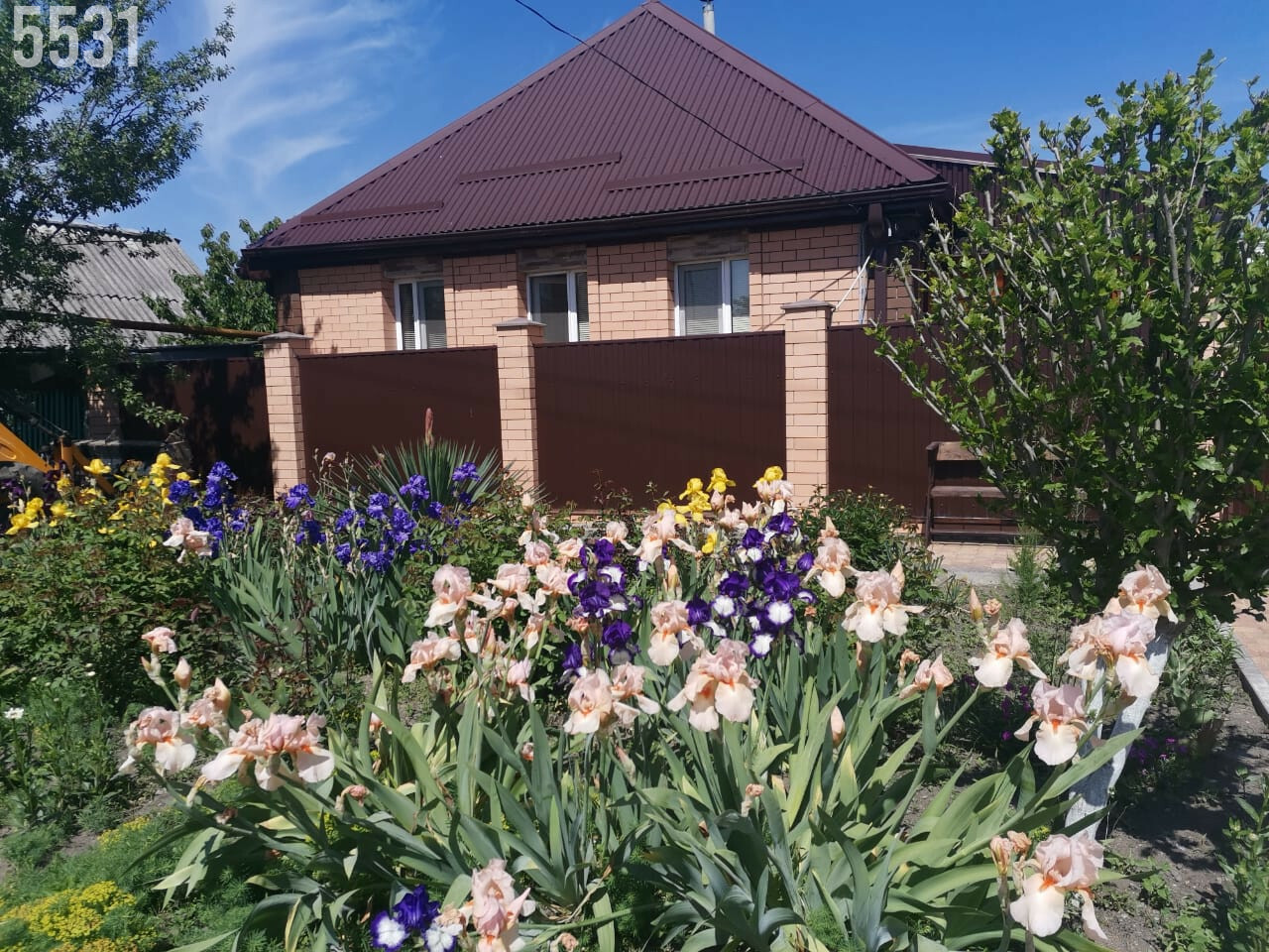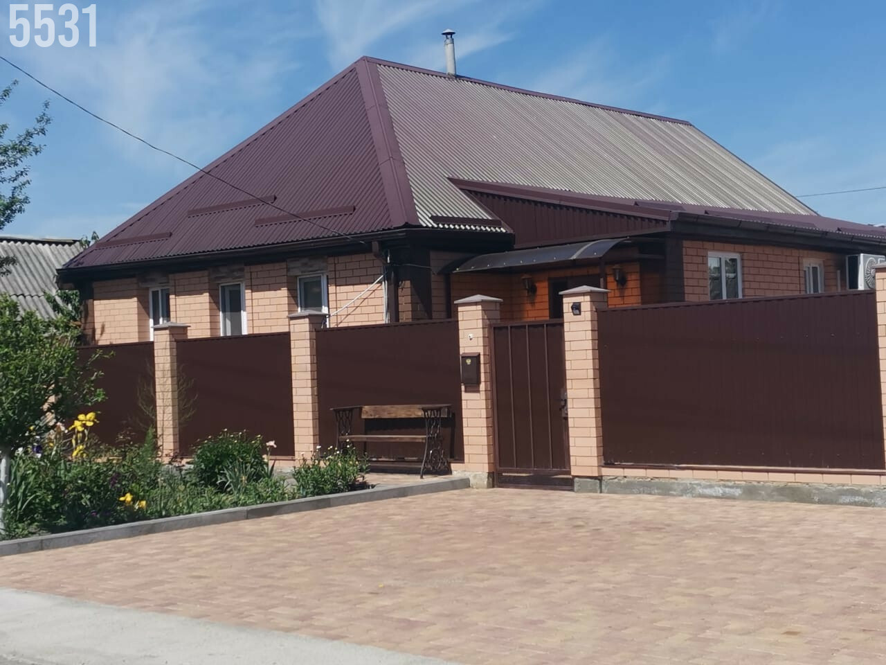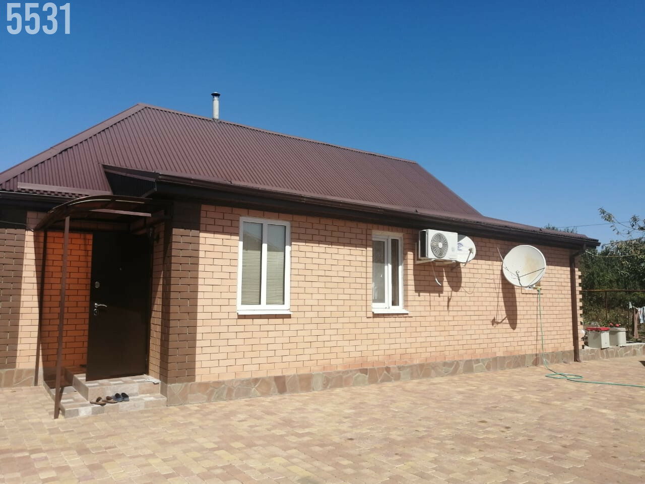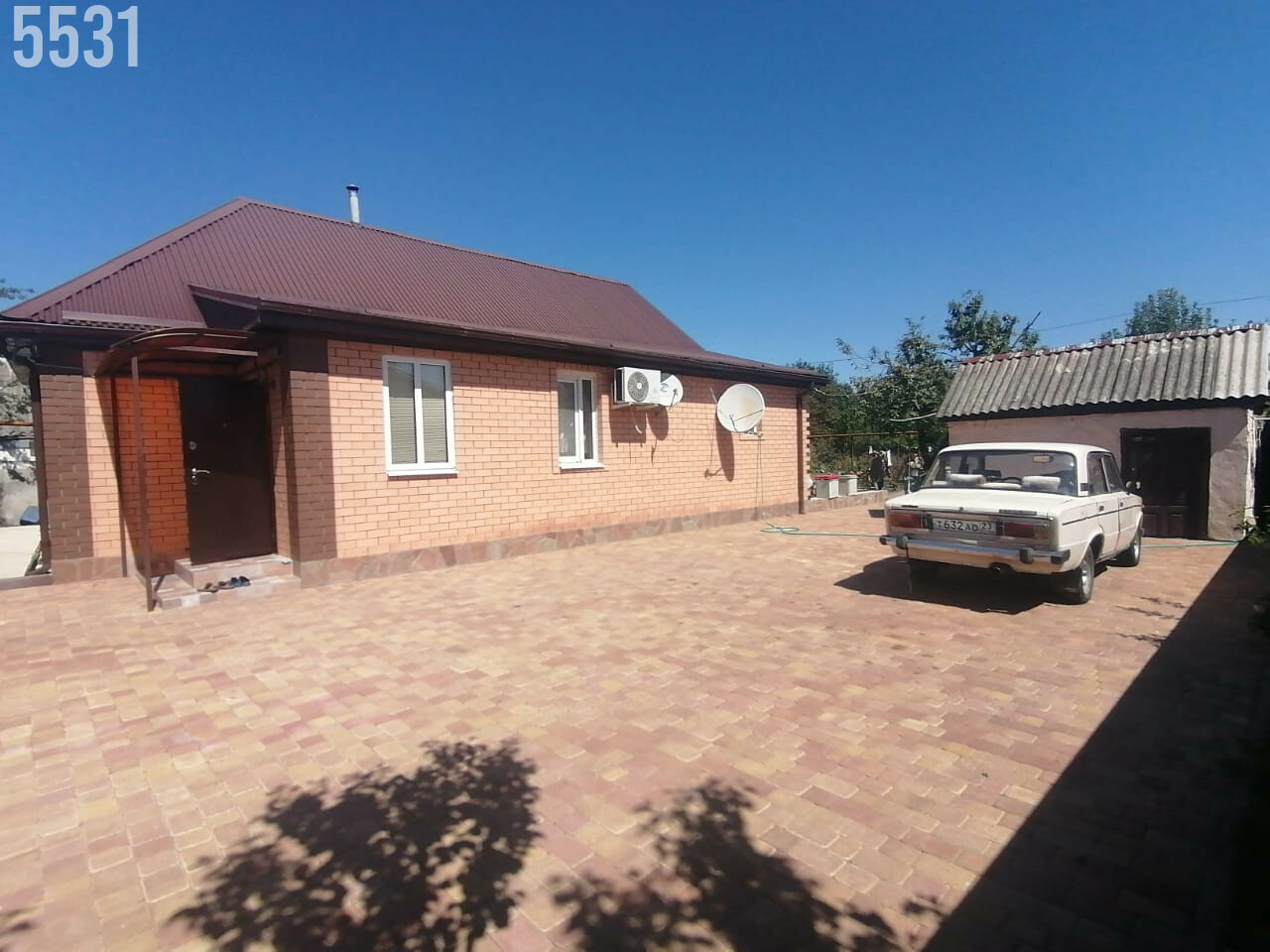 - Ухоженный ровный участок с большим количеством плодовых деревьев и кустарников, двор - вымощен плиткой, забор по периметру дома, широкий фасад, оборудованное парковочное место перед домом на несколько автомобилей.