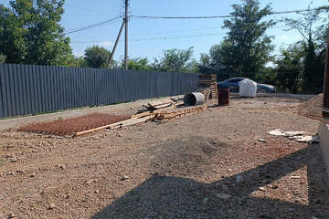 • Благоустроенная территория: фасад 25 м., забетонированный двор, освещение, забор по всему периметру, откатные ворота с автоматикой (всё входит в стоимость).
