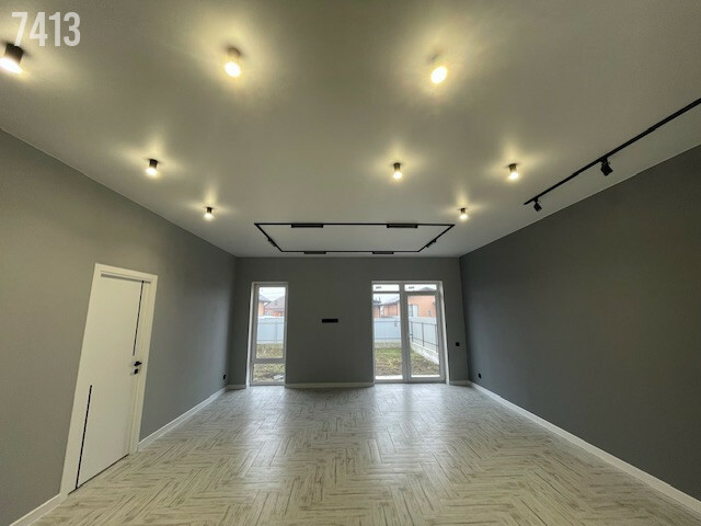 - Просторный холл с зоной хранения, три изолированные спальни и огромная кухня-гостиная с выходом на участок.