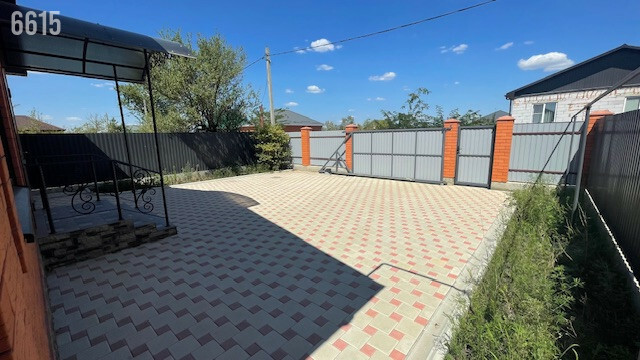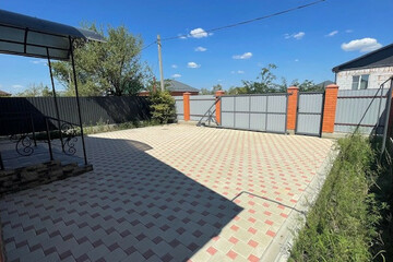 - Двор вымощен плиткой, установлен капитальный навес в зоне террасы.