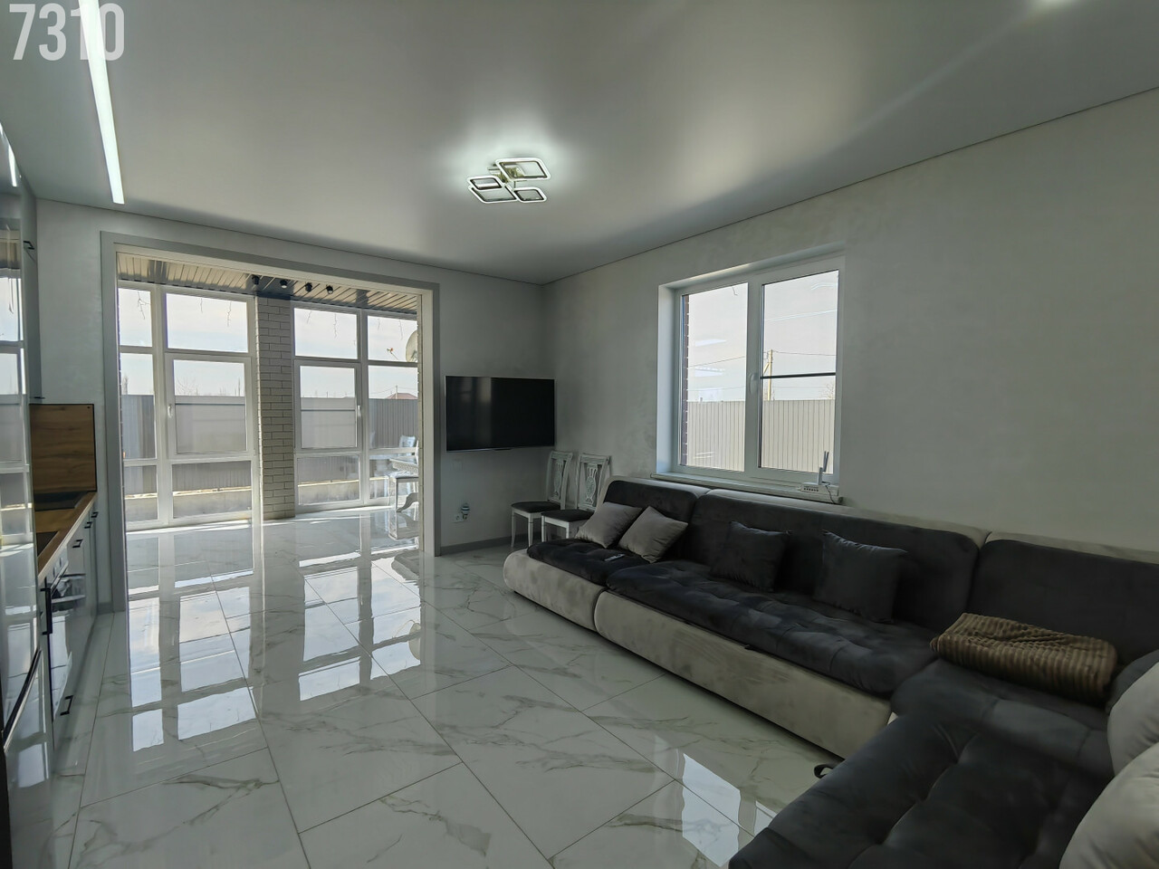 - Дом построен из качественных материалов, двор аккуратно бетонирован, а стильный забор добавляет приватности и завершает образ.