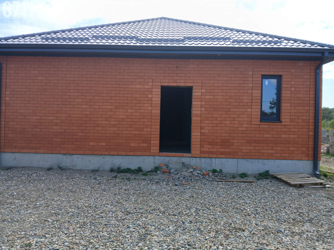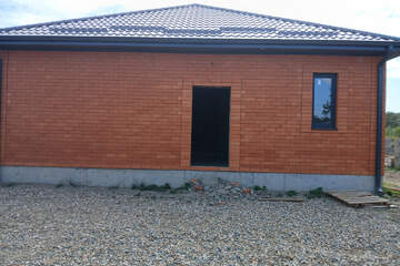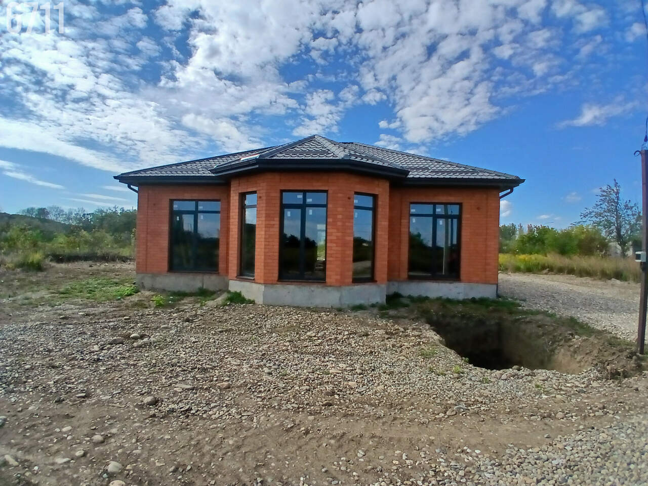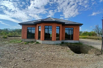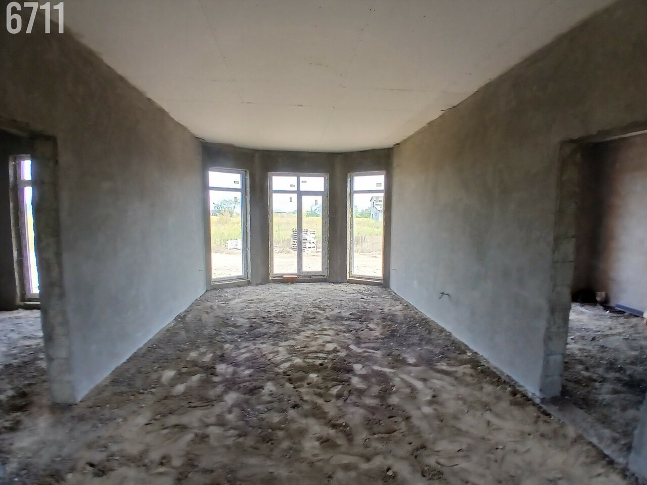 . Дом построен из блока, утеплен и обложен кирпичом. Крыша - метало черепица, Во всем доме витражные окна. Дом будет достроен к середине октября, цена не измениться. Перед входом колонны для навеса. Можем Ваши пожелания воплотить в жизнь.