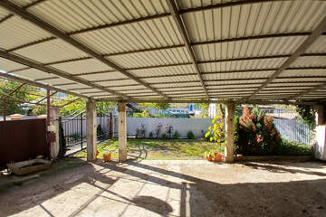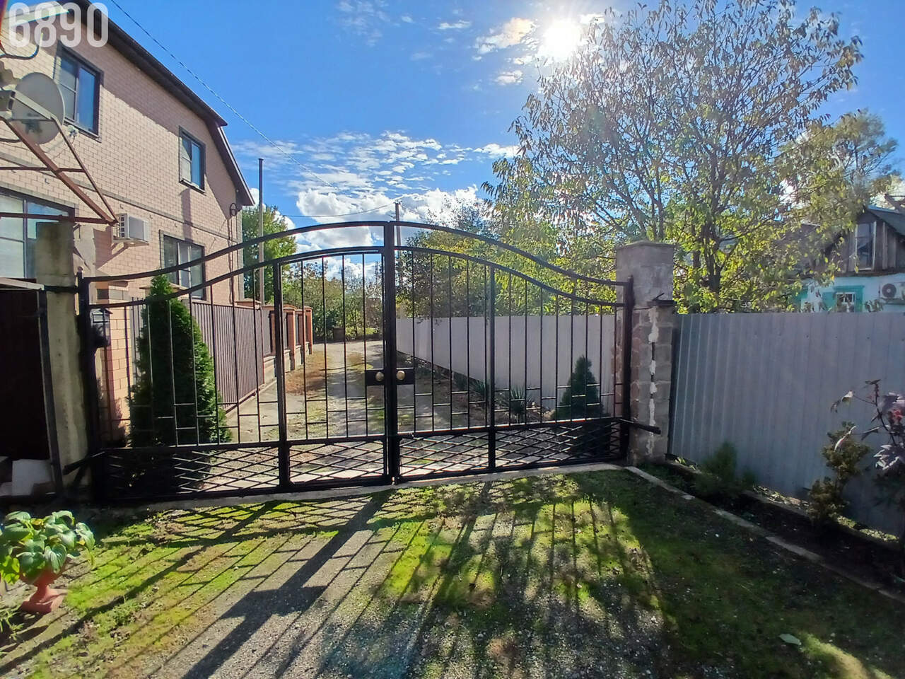 . Двор: забор капитальный - лицевая часть распашные кованые ворота, колоны, хоз. постройка - не дострой(нет крыши), уличный туалет, два навеса (на переднем и заднем дворе), парковка под три машины.