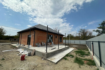 - Участок по периметру огорожен забором на ленточном фундаменте с откатными воротами.