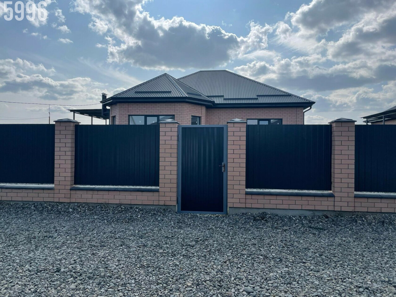 - По периметру установлен забор из проф. листа, по фасаду с кирпичными колоннами, откатные ворота.