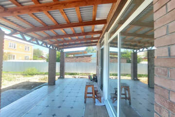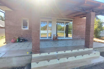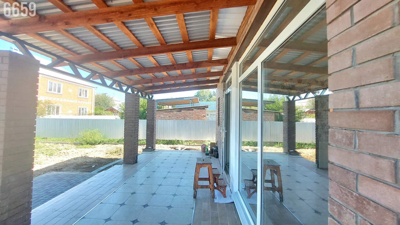 - В доме современная планировка: три изолированные спальни, гардеробная, просторная прихожая, большая кухня-гостиная, кладовая, крытая терраса.