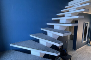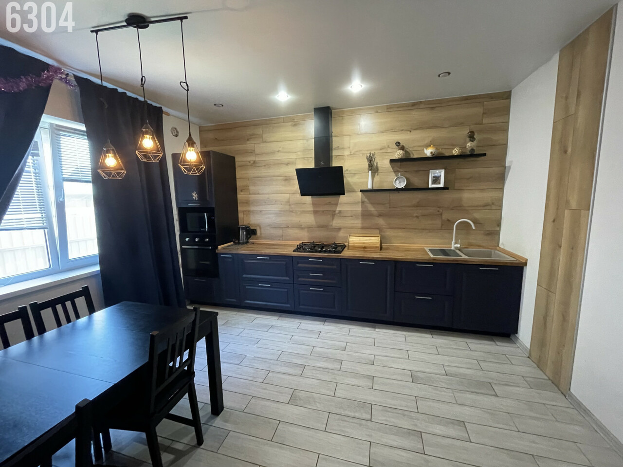 - На первом этаже расположены кухня-столовая, просторная гостиная, санузел.