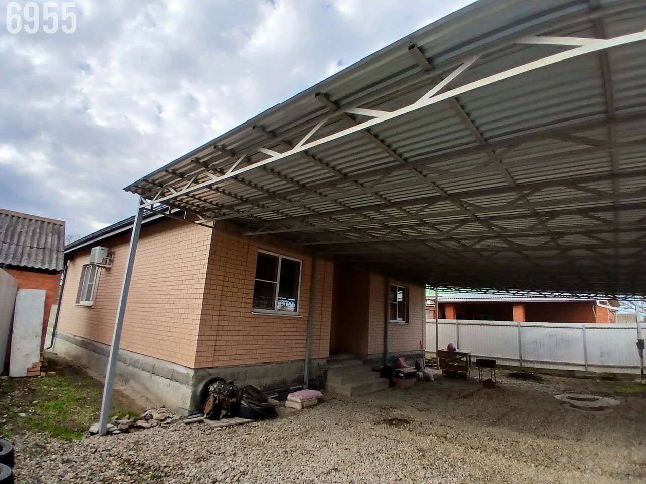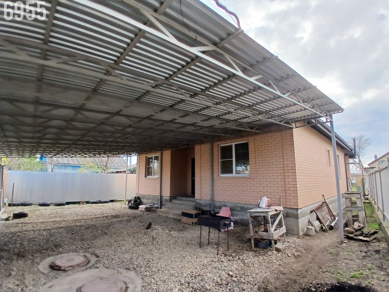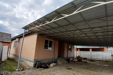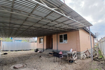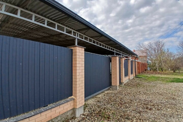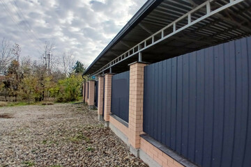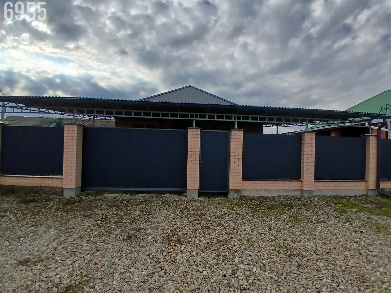 . Двор: забор капитальный - лицевая часть - колоны из кирпича, ворота откатные, навес на весь двор.