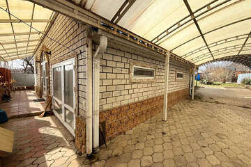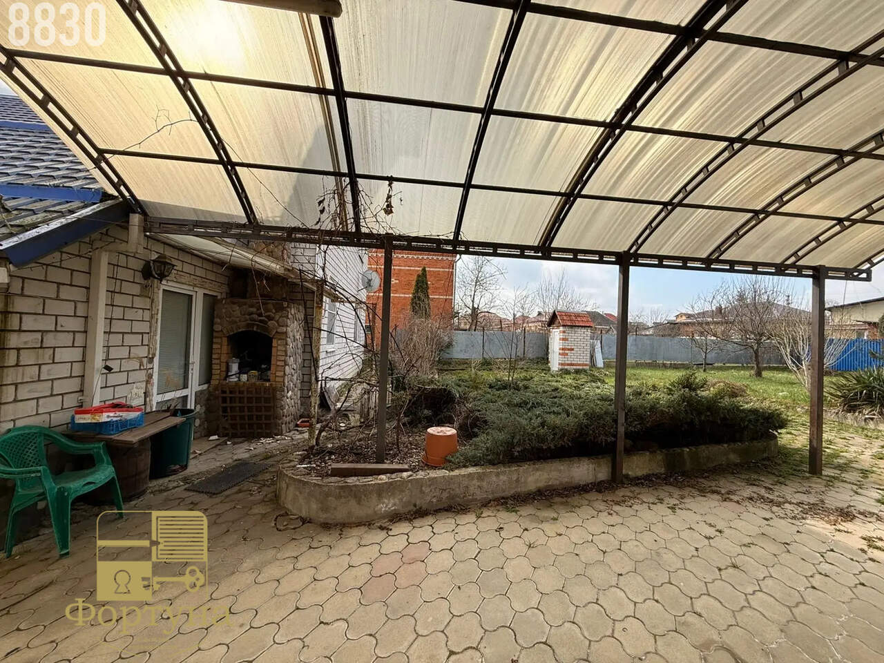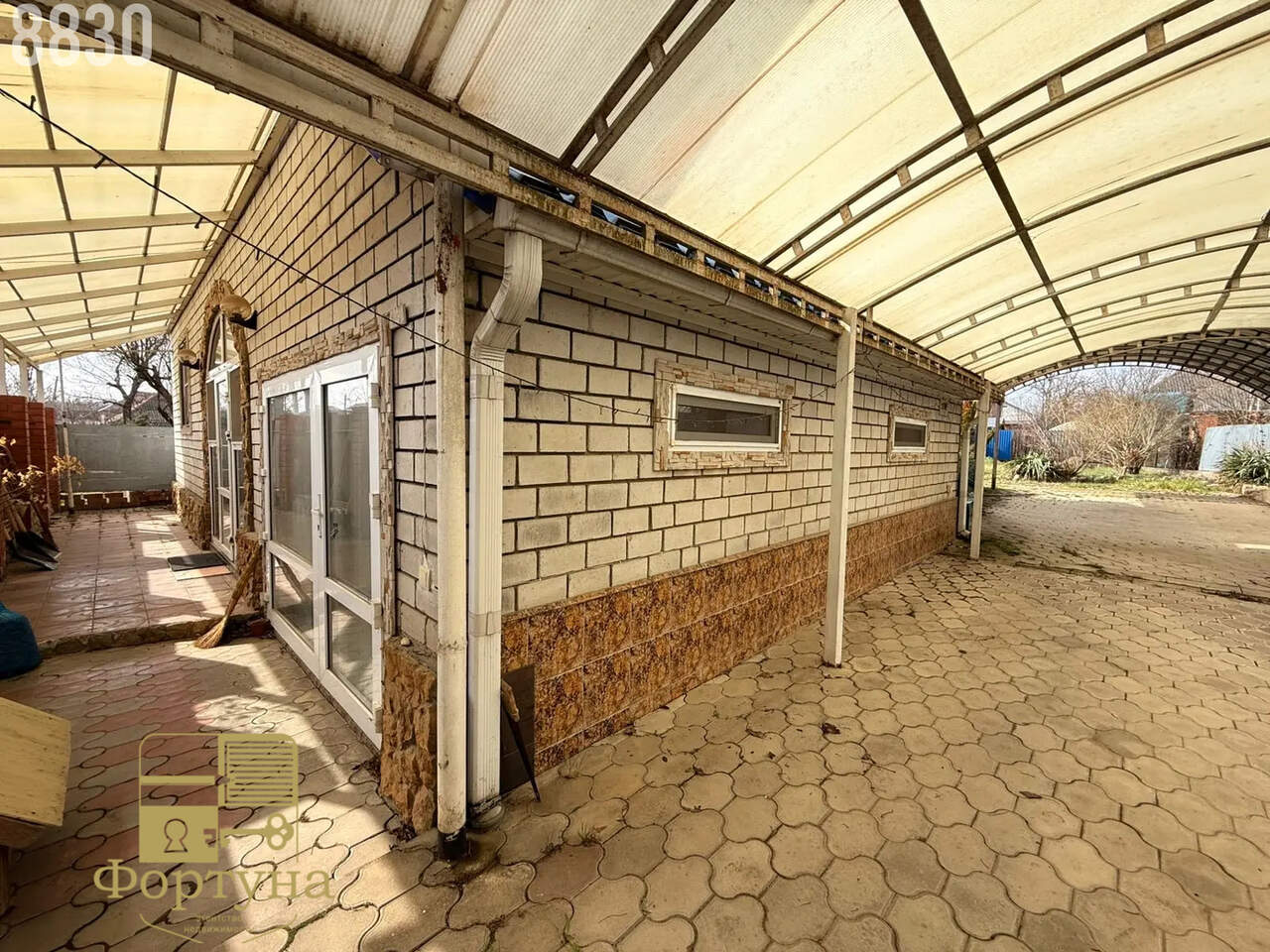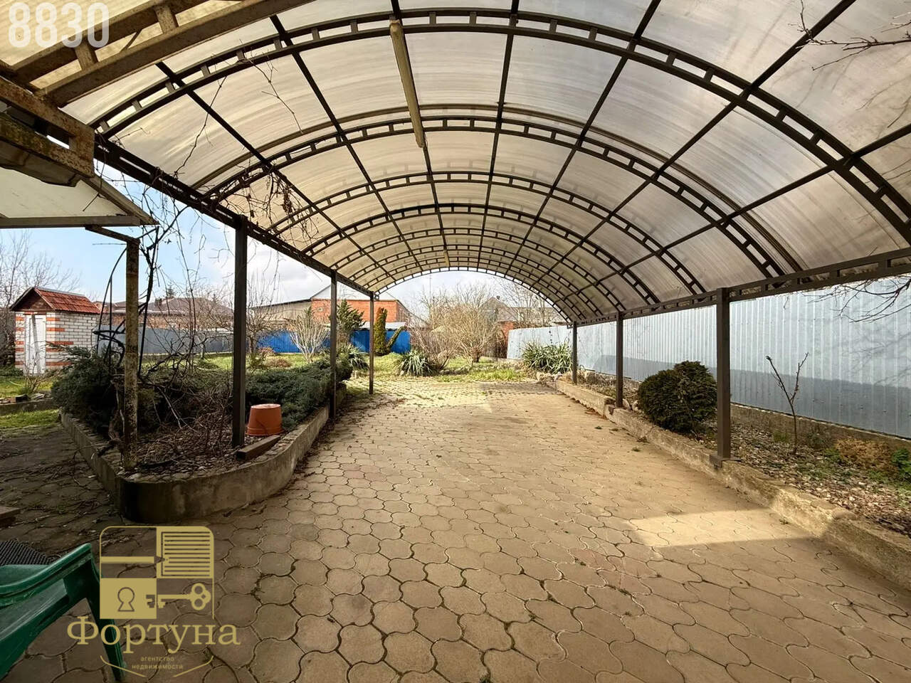 Двор полностью выложен плиткой — чисто и аккуратно в любое время года