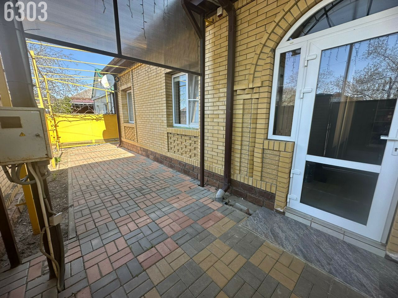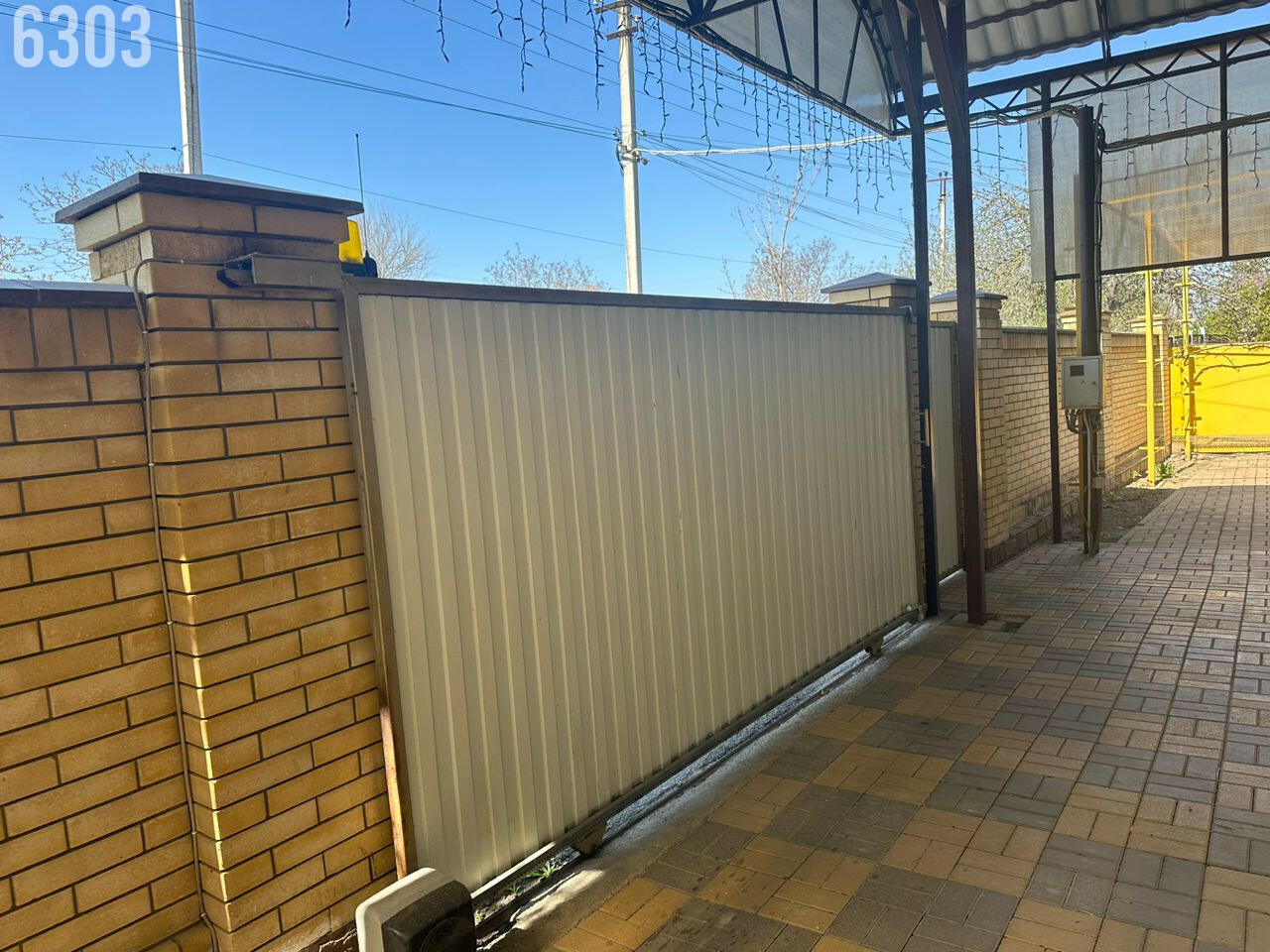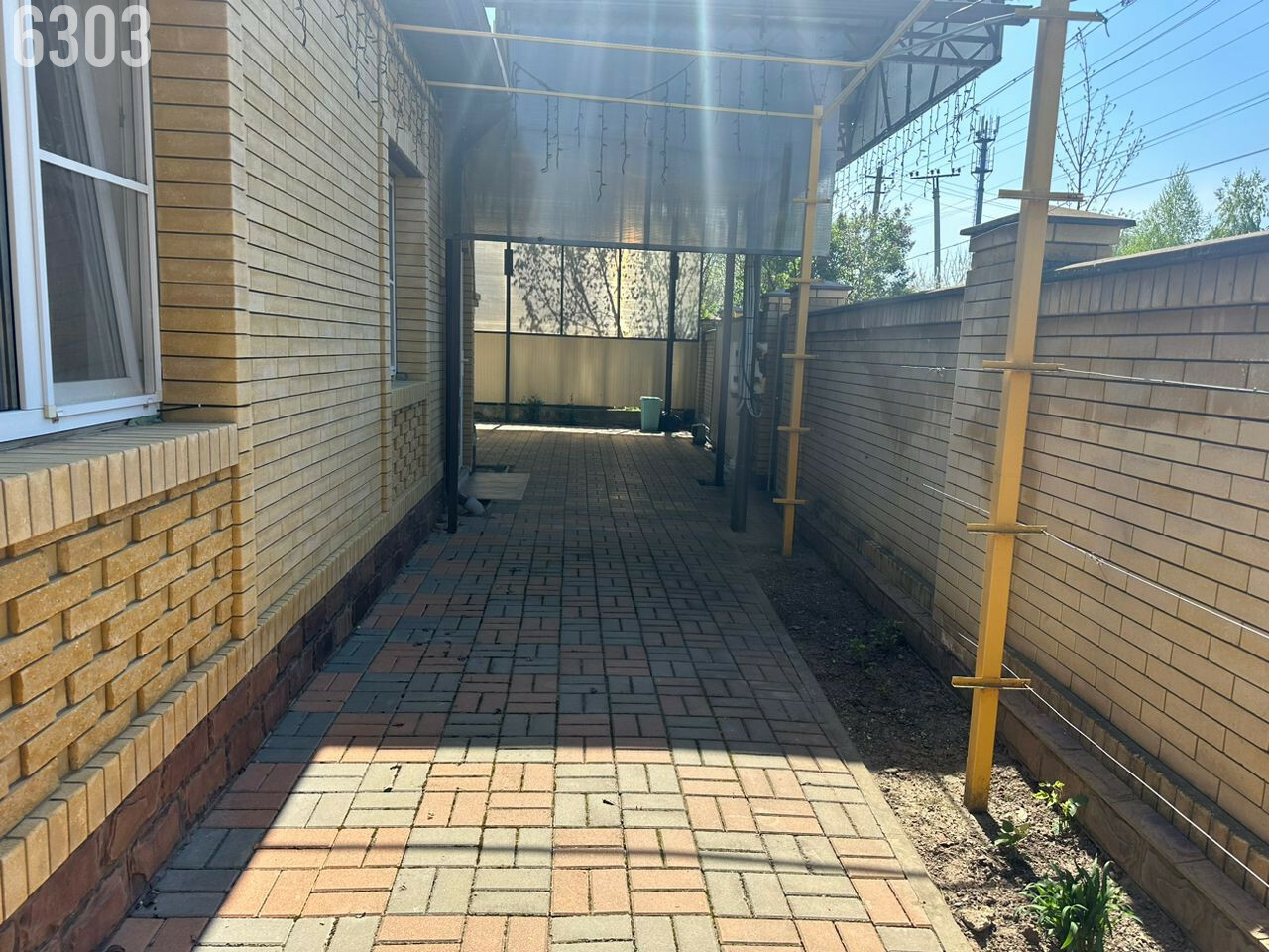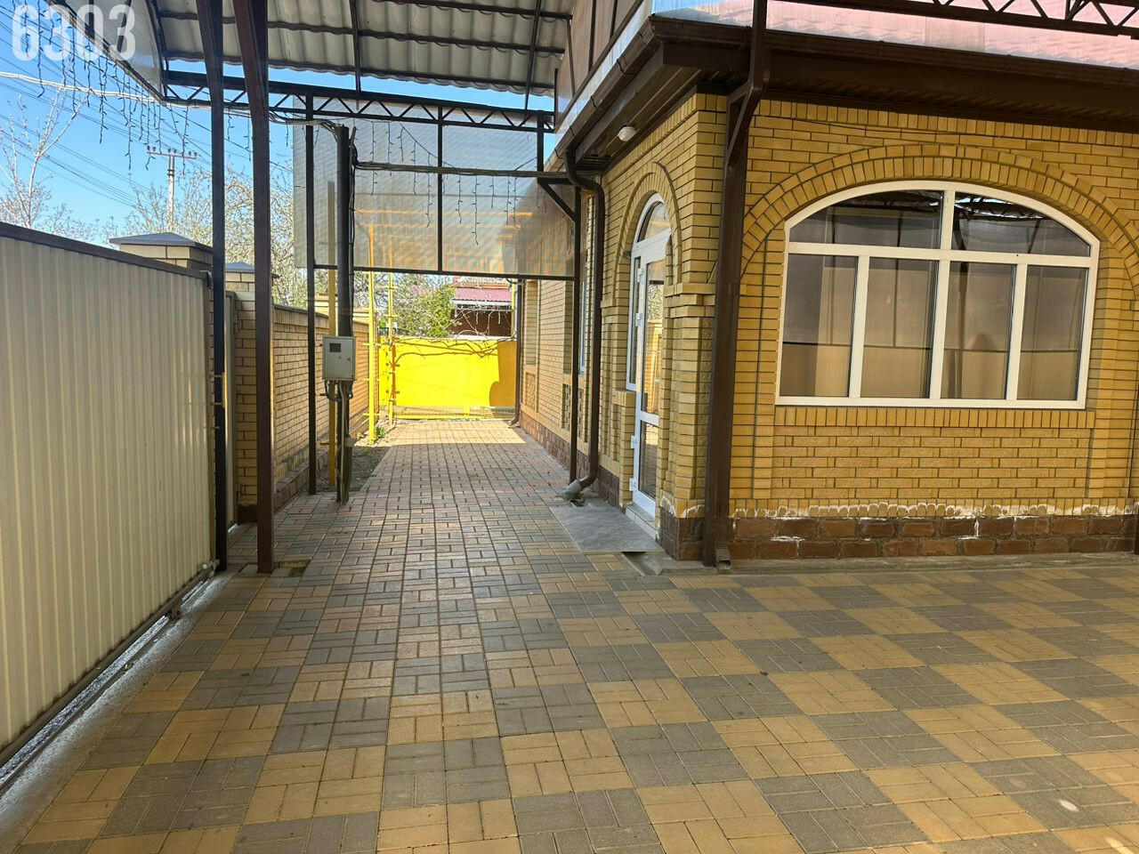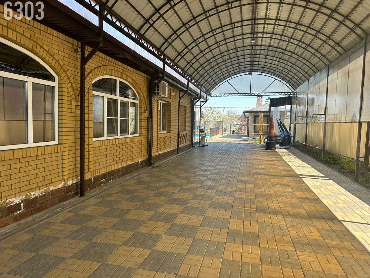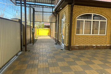 - Забор по периметру, огромный навес, двор вымощен тротуарной плиткой.