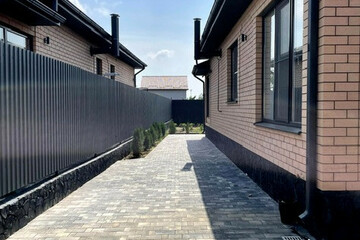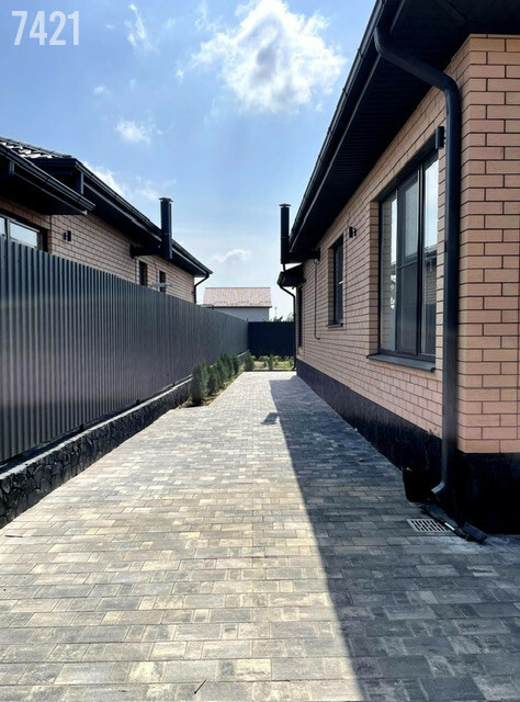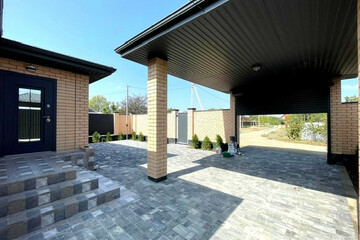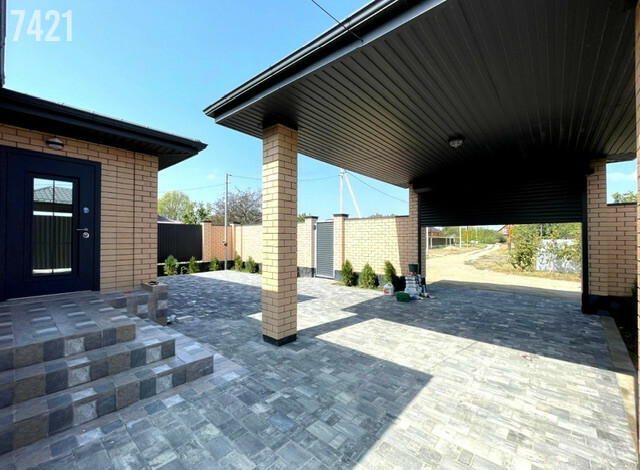 - Двор и парковочное место вымощены плиткой.