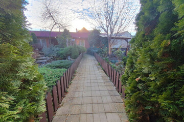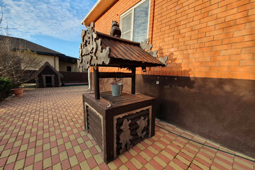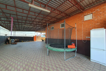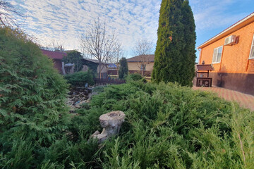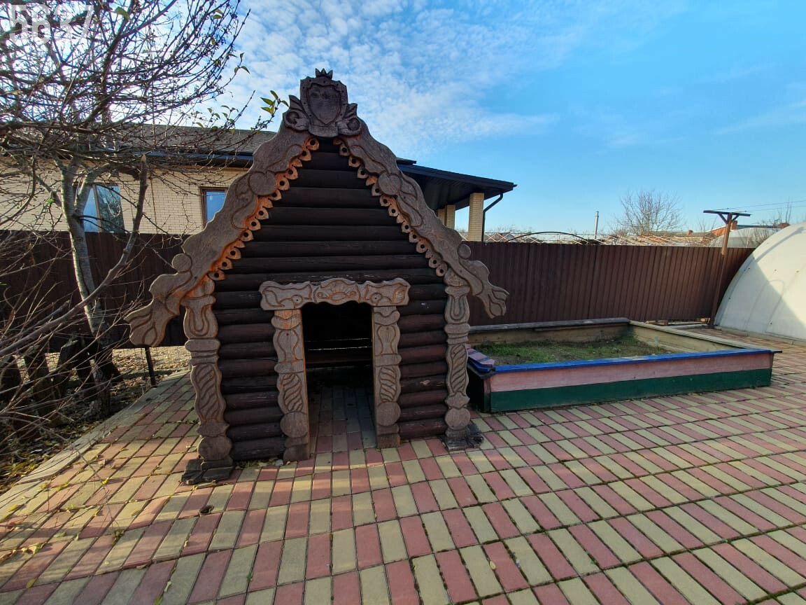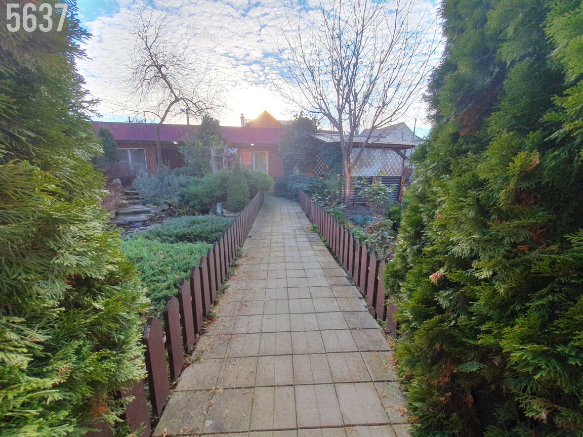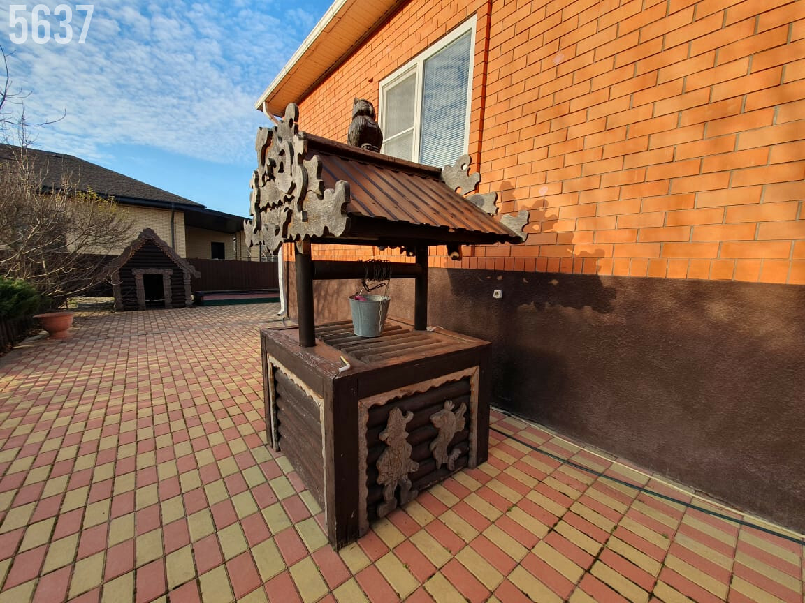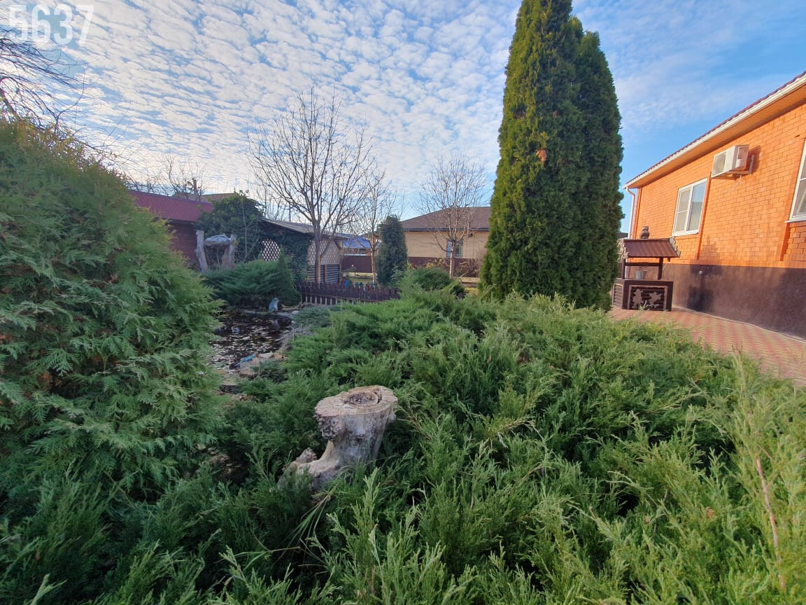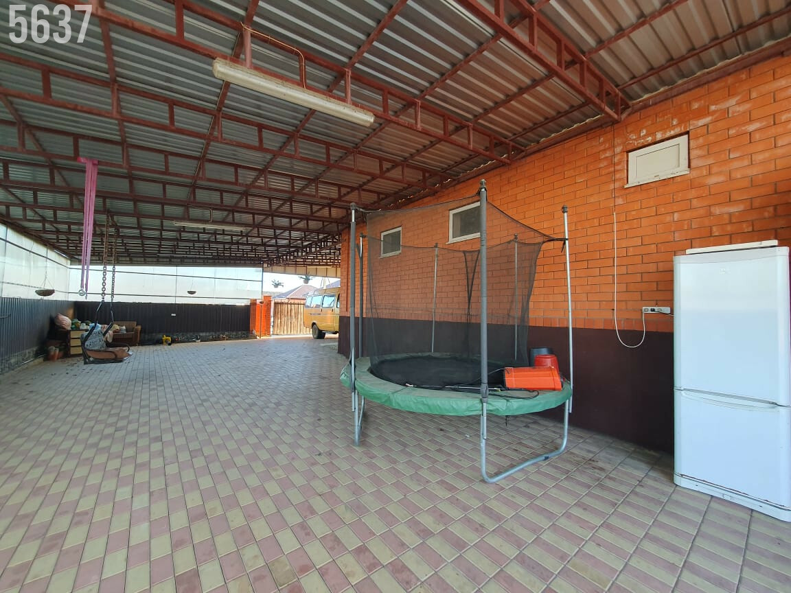 -Во дворе дома есть большой металлический навес, тратуарная плитка, гараж с автоматикой ,ландшафтный дизайн, декоративный пруд, мангальная зона с беседкой, фруктовый сад, две теплицы из поликарбоната, два вольера для собаки.