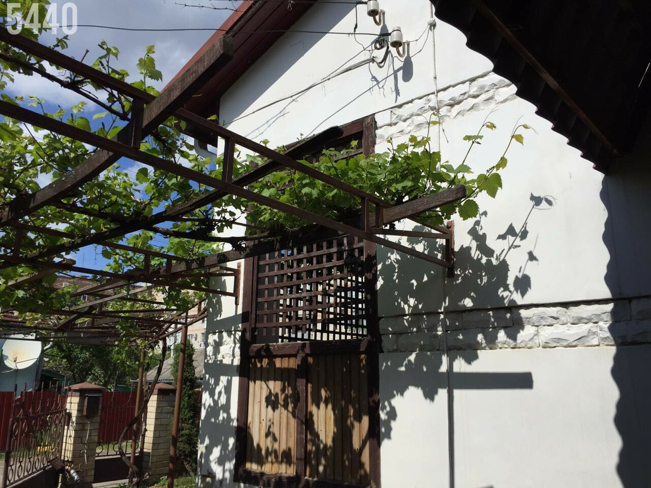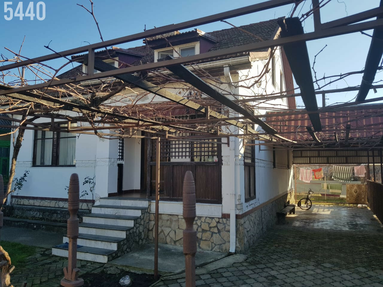 Участок огорожен по периметру, во дворе навес, а сам двор вымощен плиткой.