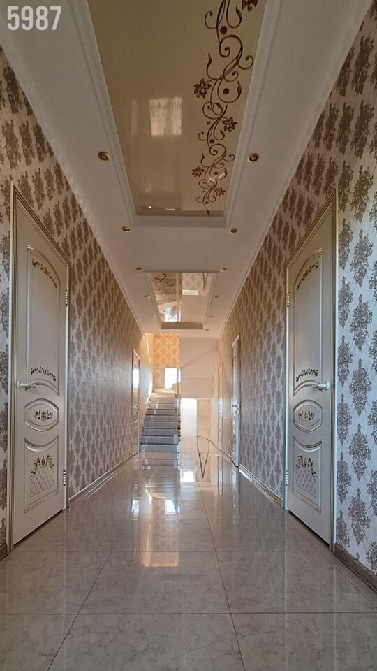 - Пол в доме и лестница на второй этаж выложены из керамогранита, в спальнях постелен ламинат.