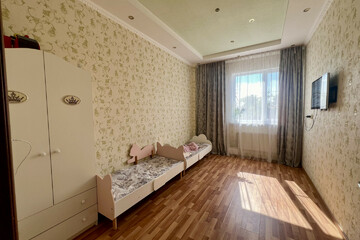 1 этаж - три спальни, зал, кухня-столовая, ванна и туалет совмещенные.