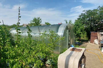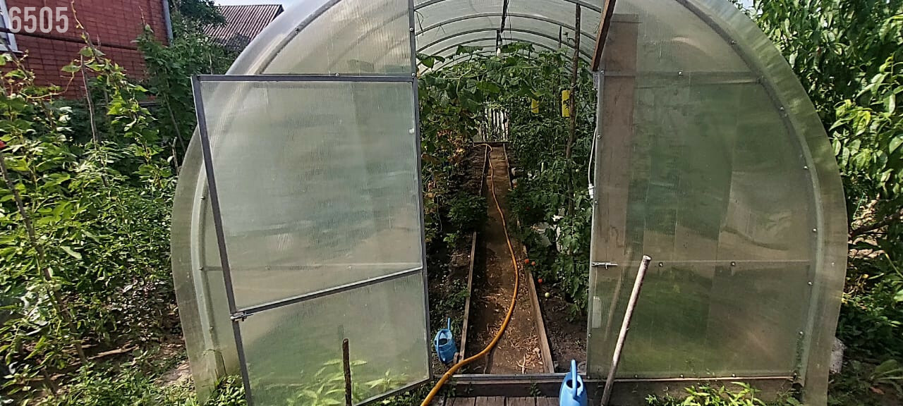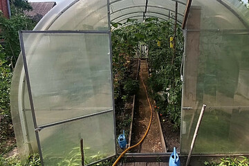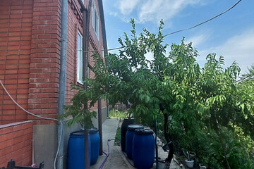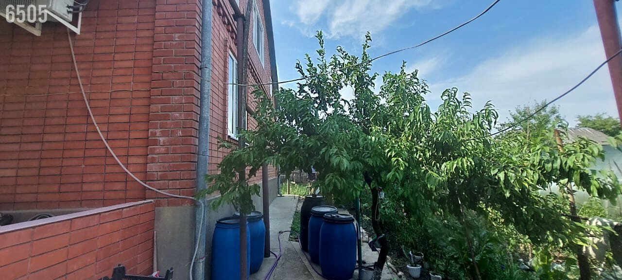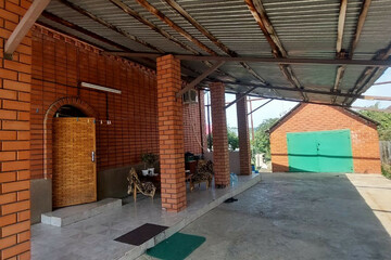 Двор забетонированный, имеется зона отдыха под навесом, кирпичный гараж, хоз.постройки, огород утопающий в зелени, плодовые деревья- персик, инжир, слива.