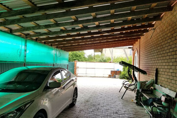 Двор в плитке, капитальный навес, беседка, хоз.постройки.