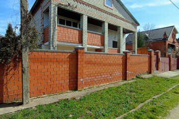 · Дом построен из самого тёплого и прочного материала: бетонный блок, между облицовкой и блоком утеплён керамзитом, облицован керамическим итальянским кирпичом. высокий фундамент (ленточный) на бетонной армированной плите.