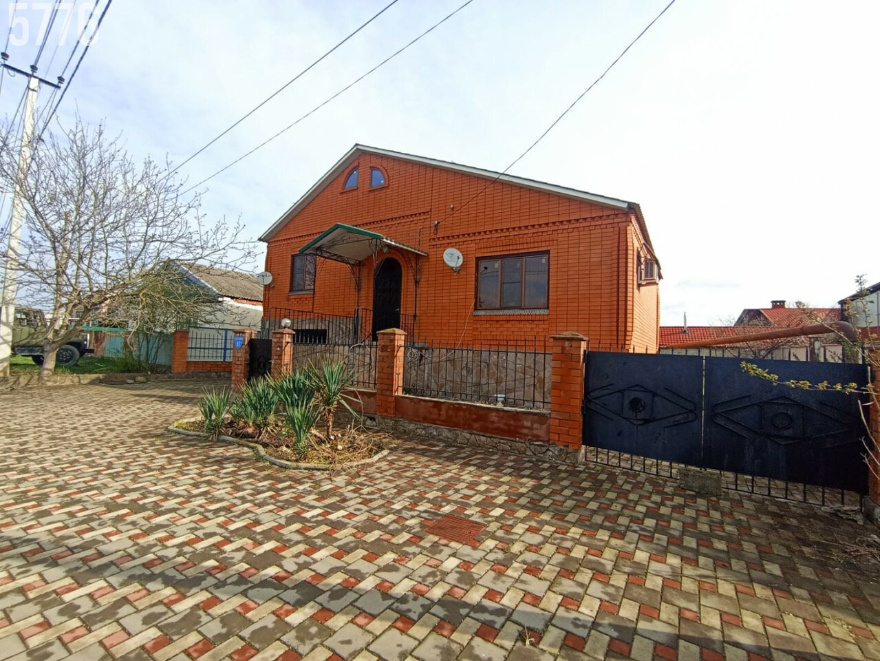 - Участок вымощен плиткой, капитальный навес, забор по периметру.
