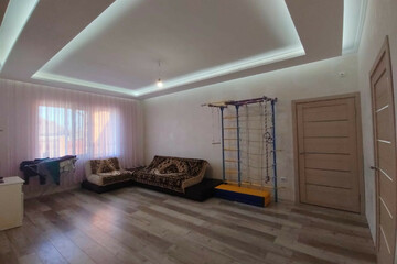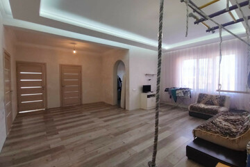 Дом построен в 2020 году . Стены из блока , утеплитель и кирпич. Делали для себя, не экономили, все сделано качественно . (Есть фото стройки дома от самого фундамента и до самой крыши). Тёплый пол во всем доме + выходы под радиаторы во всех комнатах, очень экономичный , в холодный месяц коммуналка выходит газ и свет не больше 4х тысяч рублей. Потолок в три слоя утеплённый . Фундамент лента и сверху залита плита . Лента залита через каждые 4 метра. Размеры комнат : Детская - 11, Детская - 11, спальня - 20, кухня - 25, зал - 40, котельная- 11, ванная - 5.5, туалет- 2.3, кладовка - 2.6, коридор - 5.5, гараж - 25. Высота потолков 2.8 м. Два входа + вход в гараж с дома. Раздельный санузел. Потолки гипсокартон, в гостиной-парящий со светодиодной лентой, детские-натяжной. Качественные межкомнатные двери, большие окна, комнаты очень светлые. Проведен оптоволоконный высокоскоростной интернет.