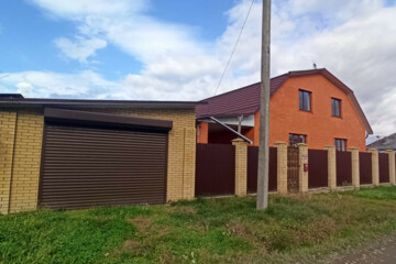 - На территории расположен большой кирпичный гараж с автоматическими воротами.