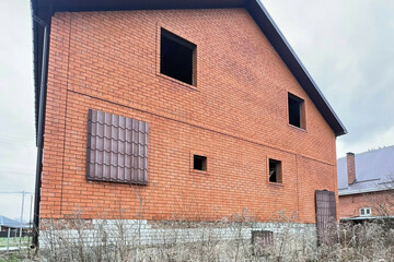 -Стены блок облицован итальянским кирпичем, плиты перекрытия между этажами, утеплитель - керамзит.