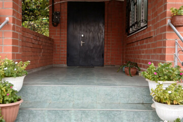 Дом построен из самого тёплого и прочного материала: блок между облицовкой и блоком утеплён керамзитом, облицован керамическим кирпичом. Между этажами плита монолит. Фундамент (ленточный) на бетонной армированной плите. 1- й этаж - решётки на окнах. В доме три выхода.