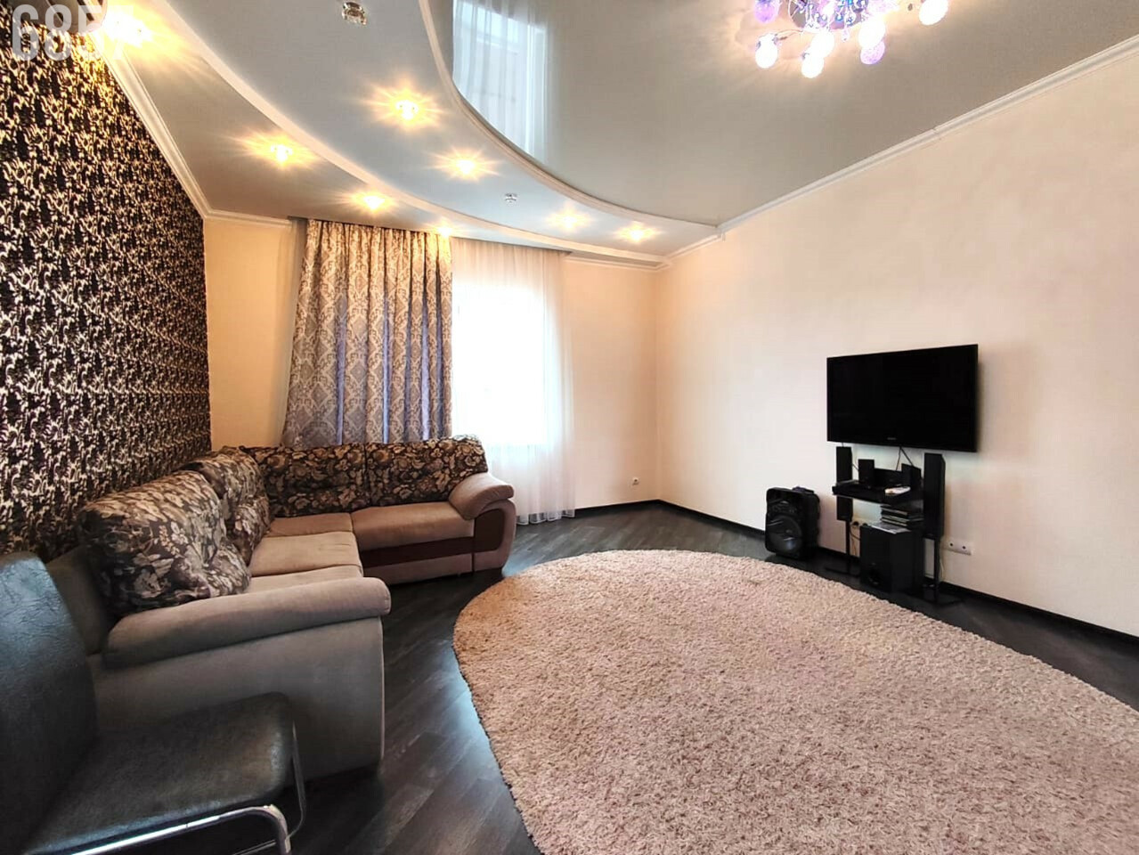 - В доме центральное водоснабжение, природный газ. Отопление - газовый котел, система "теплый пол".