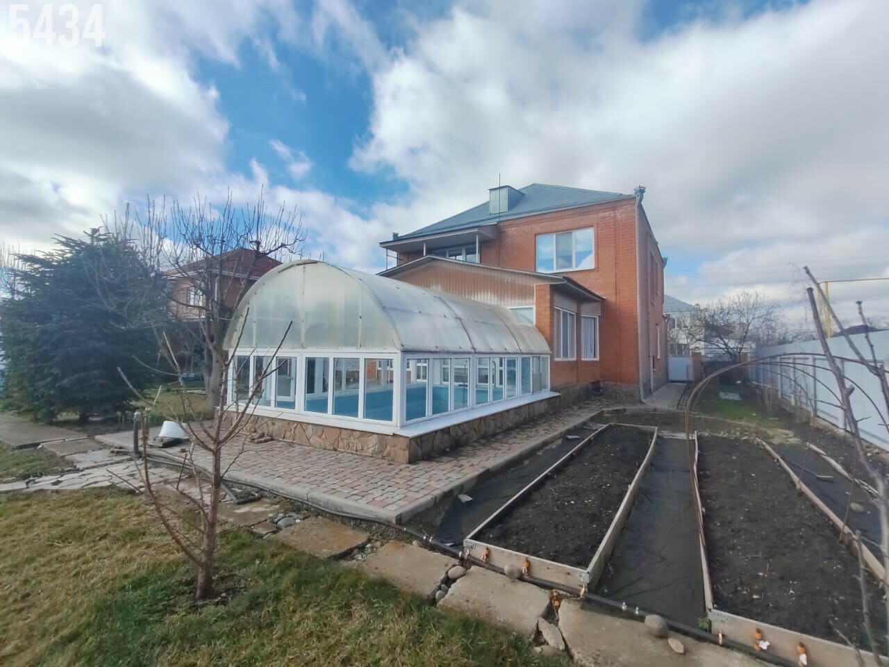 - Шикарная, облагороженная придомовая территория, двор вымощен плиткой, установлены водоотливы, озеленение, сделан капельный полив, беседка с культурными сортами винограда, шикарный молодой сад, много кустарников, газон.