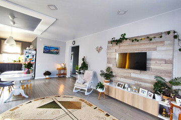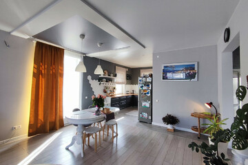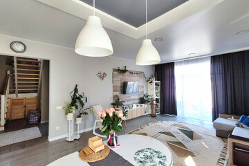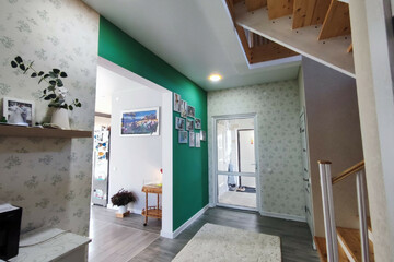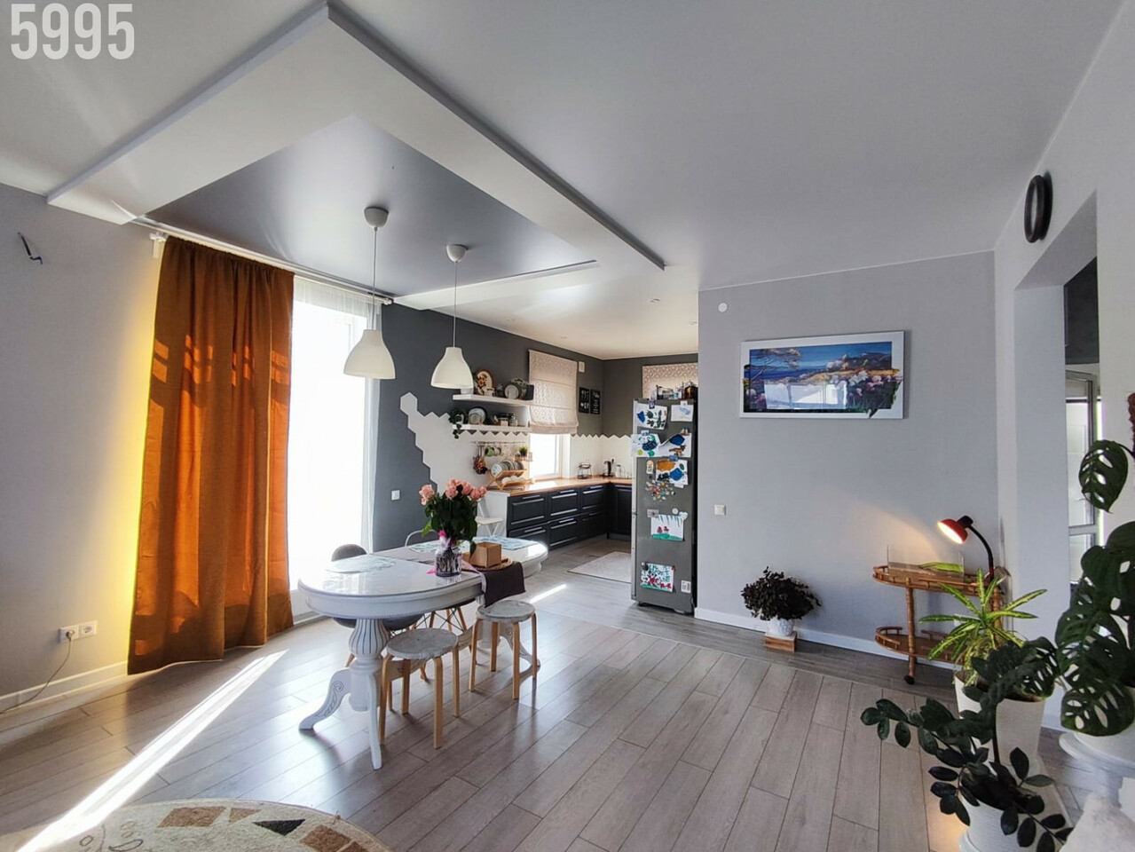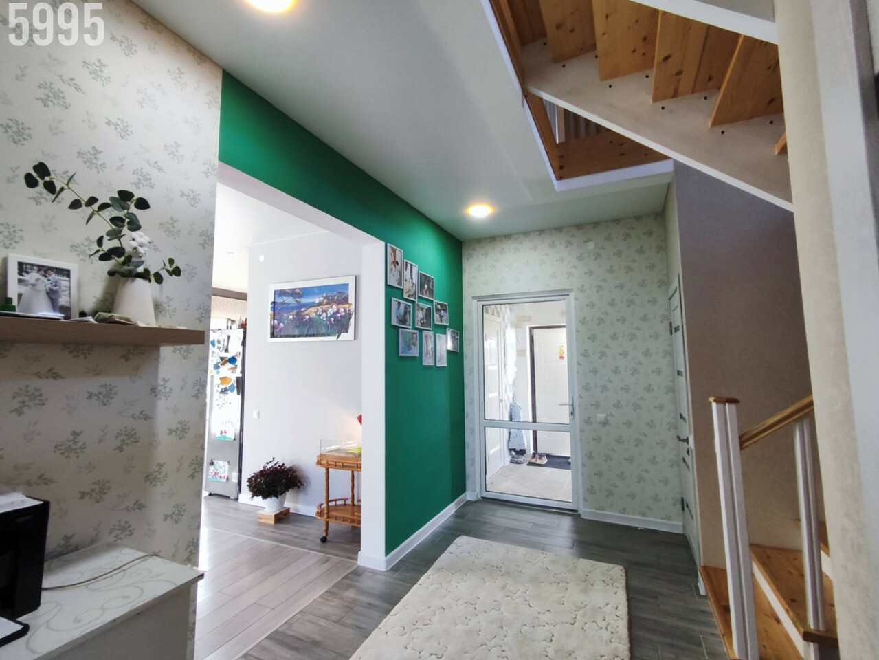 1-й этаж - коридор, котельная, прихожая, совмещенный санузел, изолированная комната, просторная кухня-гостиная с выходом на участок.