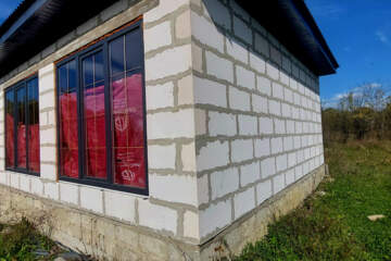 В доме одна спальня, кухня, совмещённый санузел, в чёрновой отделке.