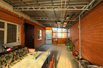 Двор забетонирован, есть большой закрытый навес, сарай, теплица. Пространства хватает для дополнительной постройки.
