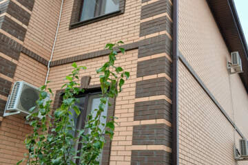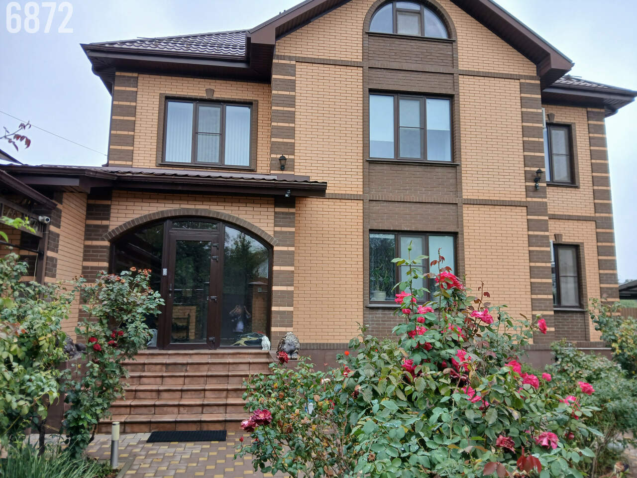 Дом построен из самого тёплого и прочного материала: кирпич между облицовкой и блоком утеплён керамзитом, облицован керамическим итальянским кирпичом. Толшина стен 60 см. Между этажами плита монолит. Фундамент (ленточный) на бетонной армированной плите.
