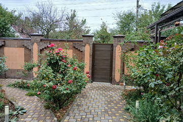 . Двор: забор капитальный - лицевая часть выложена плиткой, ворота автоматические, плитка выложенная на бетон во всем дворе, навес, гараж с автоматическими дверями, Беседка с зоной барбекю, вольер для собаки.