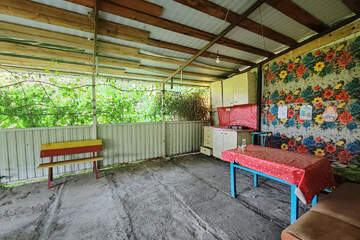 - Участок благоустроенный, высажен плодоносящий сад, множество кустарников и культурные сорта винограда.