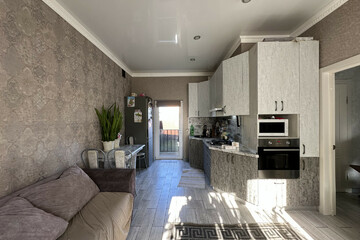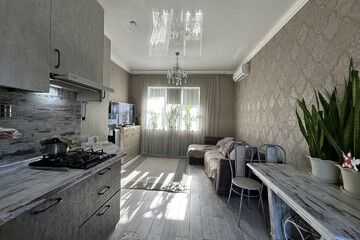 · Светлая кухня-гостиная — сердце дома, где так приятно собираться с семьей и друзьями.