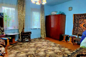 В доме 3 комнаты, большая кладовая и прихожая, отдельно расположена кухня и баня.