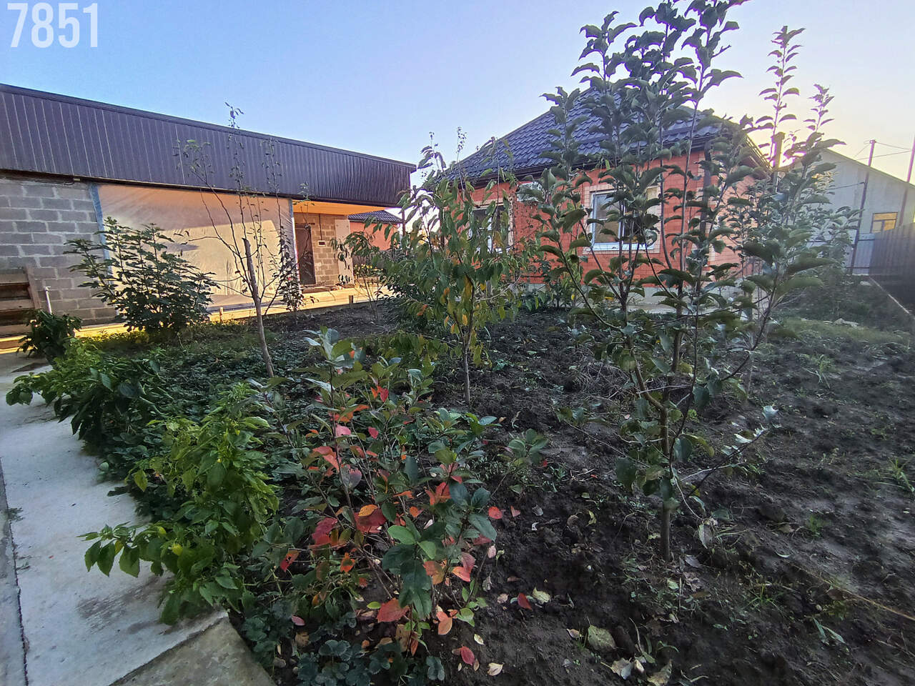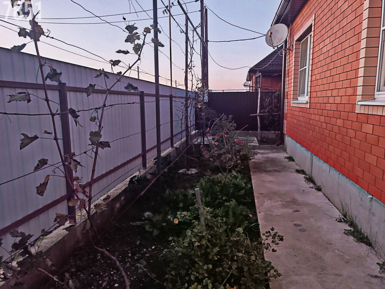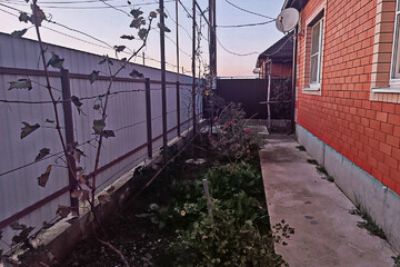 Разнообразие плодоносящих деревьев, цветники, виноградник. Двор частично забетонирован, забор по всему периметру, заезд для авто, откатные ворота.