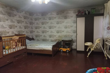 - В доме одна большая спальня, кухня, так же небольшая пристройка с планировкой под одну комнату и действующим раздельным санузлом.