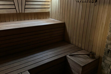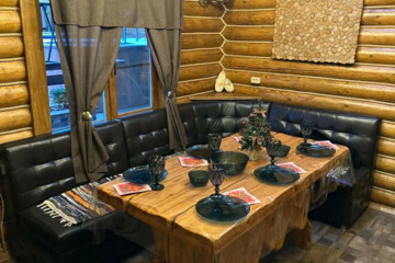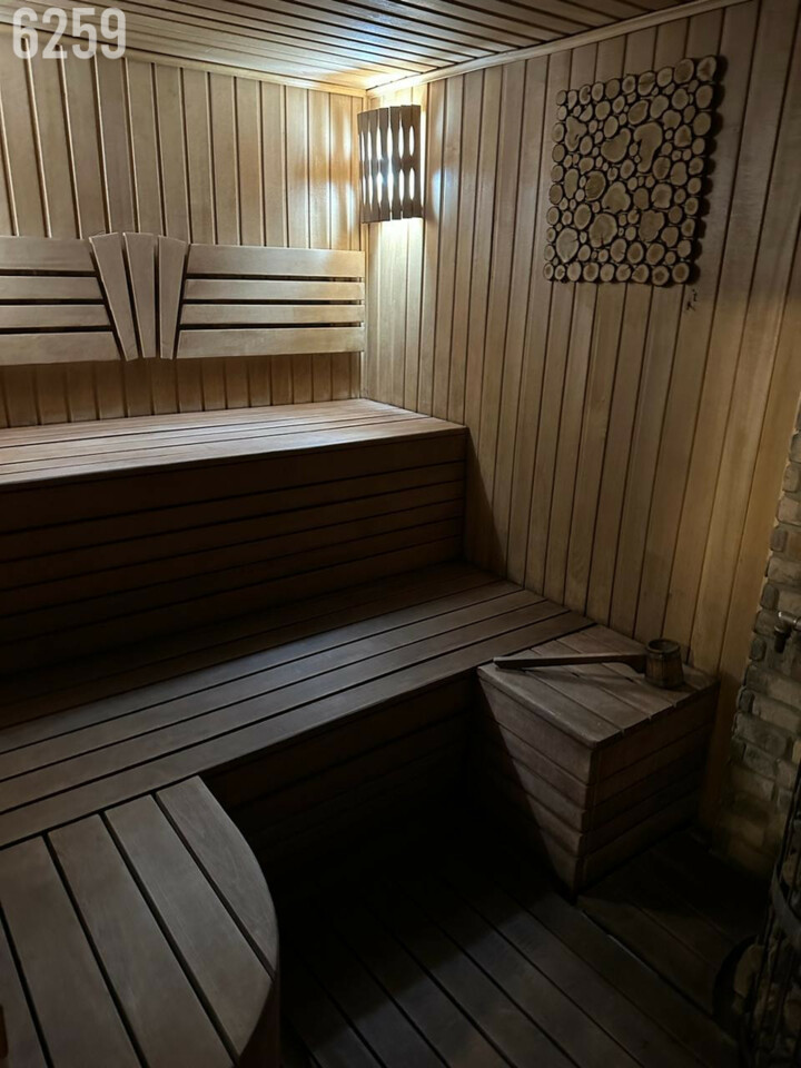 - Баня из бруса, чан с горячей водой и бассейн с холодной водой.