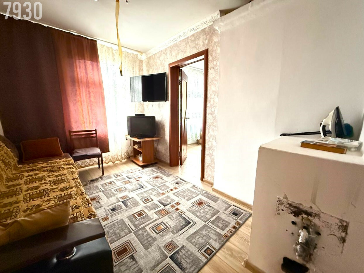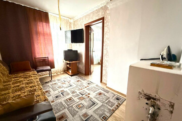 - Планировка: прихожая, одна проходная и две изолированные комнаты. Рядом расположена кухня с совмещенным санузлом.